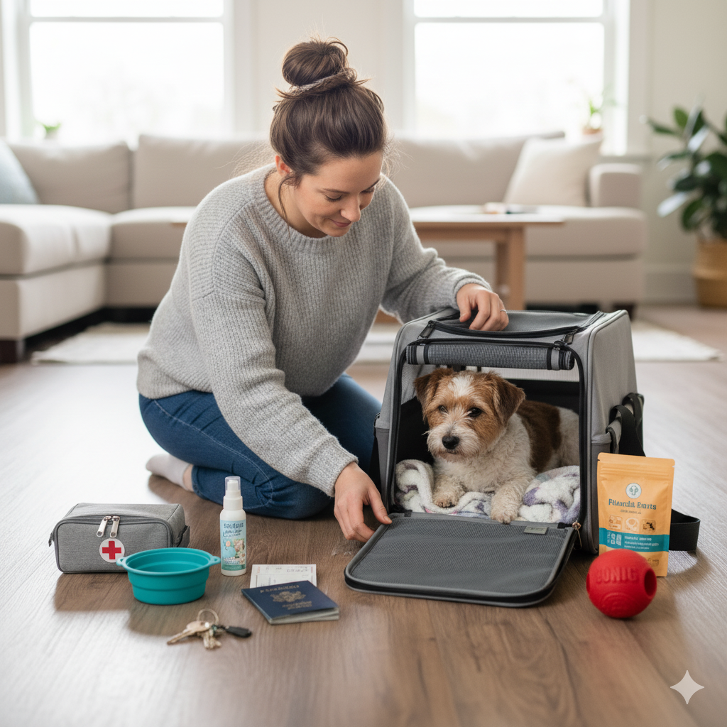 - Brinquedos e Conforto: Leve brinquedos favoritos, uma manta ou a caminha do pet. O cheiro familiar ajuda a reduzir o estresse em novos ambientes.